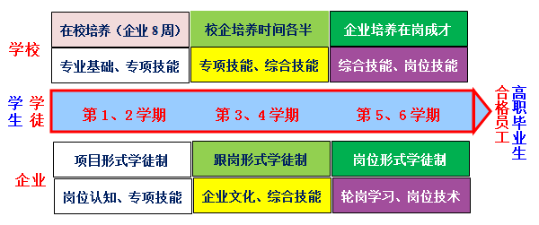 【学科与专业设置】 【技能大赛成绩】 时间 大赛名称 获奖等级 获奖学生 2012年 湖北省第一届建筑CAD技能大赛 团体二等奖 尹雪芬、毛明、李娜 2013年 湖北省第二届建筑CAD技能大赛 团体一等奖 胡仲源、王薇、王淑辉 2014年 湖北省第三届建筑CAD技能大赛 团体一等奖 洪明远、王雯霄、魏浩楠 2015年 湖北省第四届建筑CAD技能大赛 团体一等奖 喻亮、李恩顺、孙威 2016年 湖北省第五届建筑CAD技能大赛 团体一等奖 饶维杰、张力、汪昕旭 2017年 湖北省第六届建筑CAD技能大赛 团体一等奖 李子恒、陈璨、胡翊珂 根据《国务院关于加快发展现代职业教育的决定》和《教育部关于开展现代学徒制试点工作的意见》的精神,开展校企联合招生,联合培养的现代学徒制试点,完善政策支持,推进校企一体化育人,实现双主体办学、学员双身份、教学双任务、育人双导师的四双硬体构建。 学校与企业都是办学的主体,双方签订办学协议,共同参与人才培养的全过程,共同承担教学、管理、经费投入等责任,实现办学双主体;学生与校企双方签订培养协议,同时成为在校学生和企业员工,遵守学校和企业的规章制度,享受学校和企业的相关待遇,拥有学员双身份;学校承担从文化基础到专业理论的教学,企业承担技能学习和岗位实践任务,形成教学的双任务;学校派遣教师到企业一线指导学生学习,企业选拔业务骨干到学校担任职业导师,共同培育行业人才,实现育人的双导师。 在学习和深刻把握现代学徒制职业教育的精髓的基础上,建筑技术学院采用“工程项目引导、能力分段提升”的现代学徒制人才培养模式,培养与岗位对接的建筑工程技术专业高素质技术技能型人才。 根据专业人才成长规律,将职业能力培养分为专项基础能力、综合实务能力和岗位实践能力三个阶段,同时根据每个阶段能力形成特点,对专项基础能力实训采用“项目形式学徒制”,学徒在师傅指导下“边练边学”;对综合实务技能实训采取“跟岗形式学徒制”,学徒上午上课下午下工地,跟着师傅“边看边学”;岗位技能训练采取“岗位形式学徒制”,在师傅指导下“边干边学”,直至完全胜任岗位工作。 1.现代学徒制人才培养模式 (1)第一阶段为专业基础能力培养阶段:以学校为主导,企业参与为辅,采用“项目形式学徒制”,安排在第1-2学期进行。 学徒每学期有4周时间在企业见习,对专业基础课程《计算机基础》、《施工图识读与建筑构造》、《建筑工程测量》、《建筑CAD》等专项技能,采用“项目形式师徒制”,以学校教师为主、企业师傅协助,利用学校实训基地和企业工地资源对学徒进行单项技能培养,学徒在师傅指导下“边练边学”,逐一学习单项专业基础能力。 (2)第二阶段为综合实务能力培养阶段:学校主导和企业主导并存,采用“跟岗形式学徒制”,安排在第3-4学期进行。 学徒在学校和企业的时间各半,对《地基与基础工程施工》、《砌筑结构工程施工》、《钢筋混凝土结构工程施工》、《装饰与装修工程施工》、《钢结构工程施工》、《屋面与防水工程施工》等课程,学校以理论讲解为主,企业师傅结合建筑工程项目以讲实践为主,学徒上午在学校上课、下午下工地跟着师傅“边看边学”,培养学徒的综合实务能力。 (3)第三阶段为岗位能力培养阶段:以企业为主导,学校参与为辅,采用“岗位形式学徒制”,安排在第5-6学期进行。 学徒在岗实践是以企业为主导,到试点企业上岗实践,校企对学徒下达岗位课程任务书。把学徒按5人一组分成若干小组,一半学生到施工员岗位实践,另一半学生到安全员岗位实践,半年后施工员和安全员岗位交换实行轮岗,使学生在岗位上成才。 学生经过岗位实践后,可以将专业理论知识和专业实际技能有机结合,学徒拿到毕业证后,可报考施工员、安全员、质检员、材料员等国家职业资格证书。 2.现代学徒制人才培养流程图