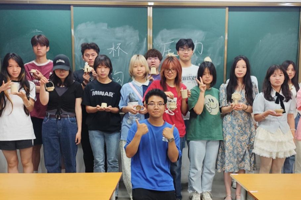 在创意表达环节,同学们将纸杯作为"压力容器",通过剪裁、折叠等方式进行个性化创作。这种非语言的表达方式让同学们在轻松氛围中实现了情绪的自然宣泄。团队协作环节中,各小组需在限定时间内将个人作品整合为集体创作。同学们通过互相支撑的纸杯结构,亲身体验到团队支持的重要性。
