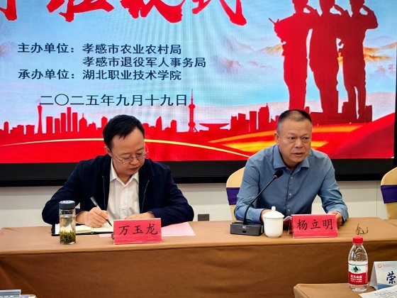 (本网讯 王菲、邓海波、赵晶)9月19日,孝感市2025年度高素质农民教育培育项目新产业新业态带头人(退役军人)培训班在孝昌县农夫子教育培训基地正式开班。本次培训班由孝感市农业农村局、孝感市退役军人事务局联合主办,湖北职业技术学院承办。来自孝感市各县市区的50名退役军人及军属参训,共同开启“从军营到田野”的技能提升之旅。孝感市退役军人事务局党组成员、副局长万玉龙,就业创业科科长万进,孝感市农业农村局社会事业促进科科长李浩,学校副校长杨立明,建筑工程学院院长郭自灿、党总支书记艾欢、副院长王菲,继续教育学院副院长汪向东等出席开班仪式。仪式由郭自灿主持。