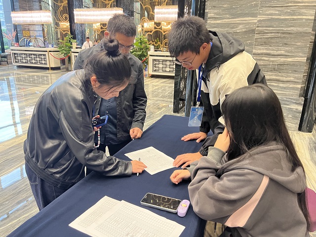 为保障活动顺利推进,志愿服务队提前统筹、周密部署。活动前夕,一批志愿者已投入到纪念品分装与整理等准备工作中;同时,另一组志愿者负责会议相关短信的精准发送,确保嘉宾在会前、会中与会后均能及时获取重要信息。