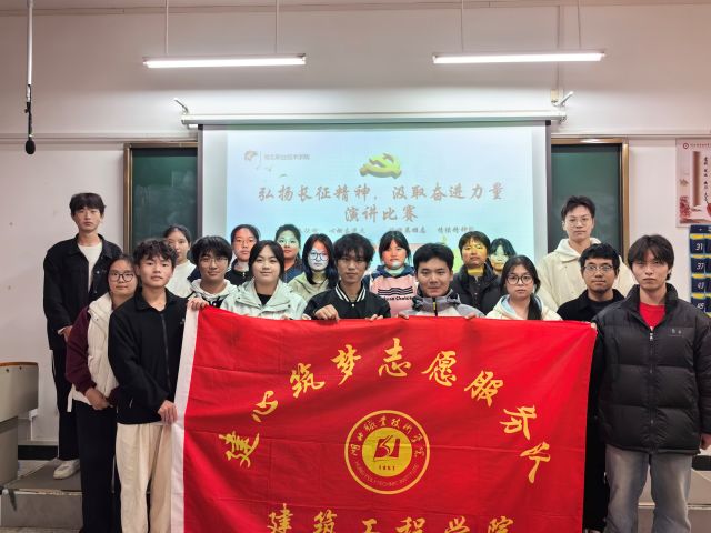 为传承红色基因、厚植爱国情怀,10月26日晚,我院在南区知行楼8508教室举办“弘扬长征精神,汲取奋进力量”——“中华魂”主题演讲比赛。八十八载岁月流逝,长征的精神丰碑依然熠熠生辉。本次比赛以“声传长征魂,心燃奋进火;语颂英雄情,赓续精神脉”为主线,引导建筑学子通过演讲与长征精神展开一场跨越时空的对话。