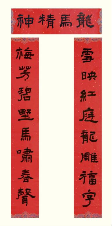据悉,本次大赛共收到全省职工投稿作品数千件,进入交流活动作品800件,最终评选出获奖作品60件,其中一等奖10件、二等奖20件、三等奖30件,竞争尤为激烈。梁遗鹏教授的获奖作品以春联“雪映红庭龙雕福字;梅芳碧野马啸春声”为内容,笔力雄健、布局精妙。其书风融古朴与灵动于一体,作品不仅展现了深厚的传统功底,更通过“龙马精神”的横批,将新春吉庆、时代精神与荆楚文脉凝于翰墨,获得了评委会专家的高度评价。